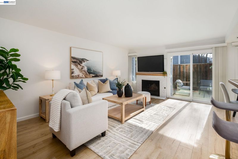 Welcome to 218 Ashley Circle, a beautifully updated corner-unit townhome in the desirable Walnut Forest community of Danville. This light-filled residence offers a flexible floor plan, inviting indoor-outdoor living, and access to thoughtfully maintained community amenities—all just moments from downtown Danville’s shops, dining, and local charm. The main level showcases wide-plank flooring, fresh neutral tones, and a warm, welcoming living room centered around a cozy fireplace. Expansive sliding glass doors open to a private, fenced patio—perfect for entertaining, relaxing, or everyday enjoyment—while abundant natural light fills the space throughout the day. The bright, functional kitchen features crisp white cabinetry, new quartz countertops, stainless steel appliances, generous counter space, and a breakfast bar that seamlessly connects to the dining and living areas. The adjacent dining space, highlighted by a modern chandelier, also enjoys direct patio access for effortless indoor-outdoor flow. Upstairs, new carpeting lines the stairs and hallway, leading to the spacious primary suite, which offers flexibility for a sitting area or home office along with ample closet space and abundant natural light. The remodeled en-suite bath features a sleek walk-in shower with clean