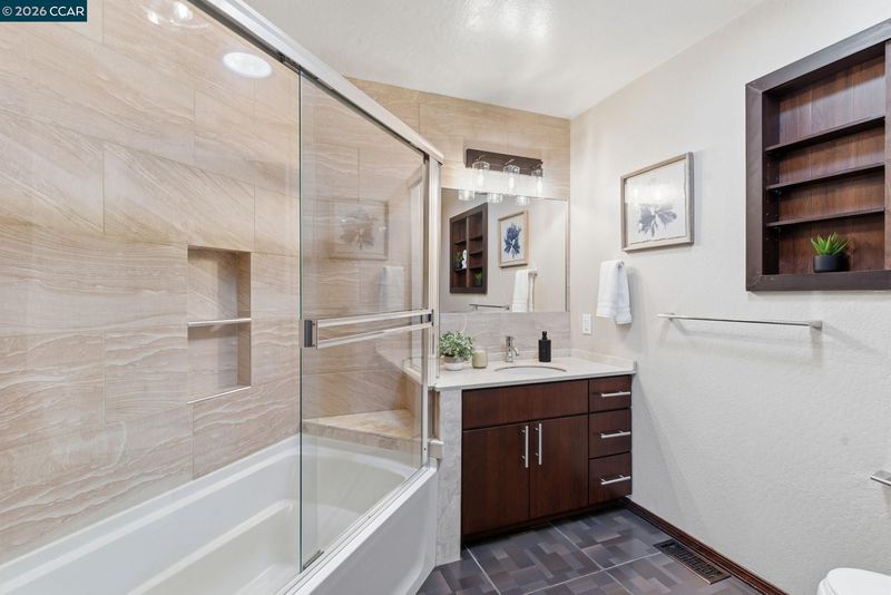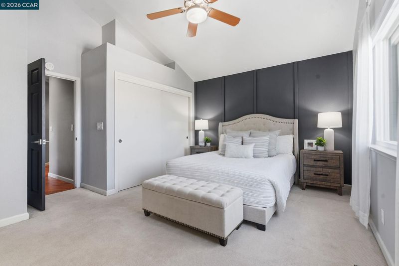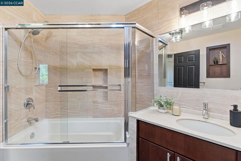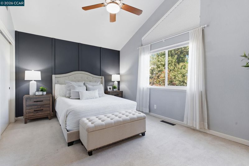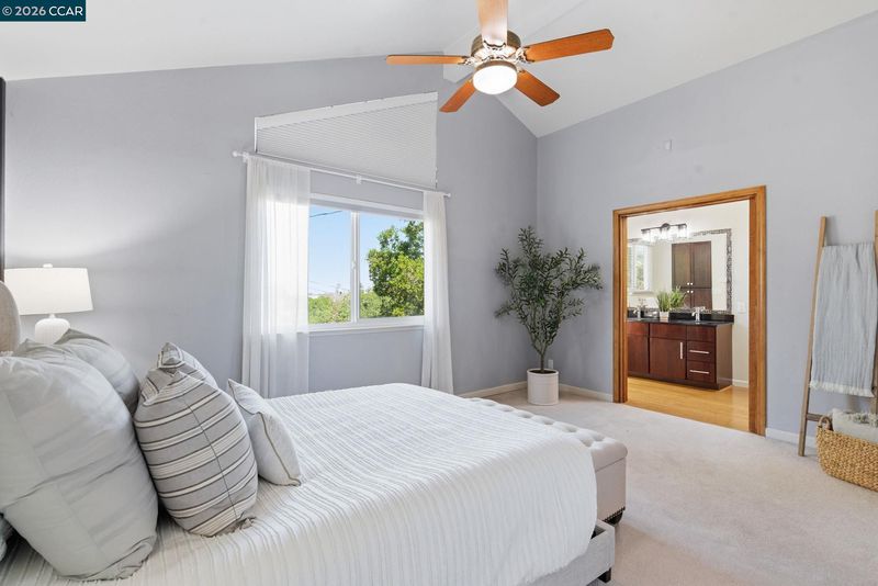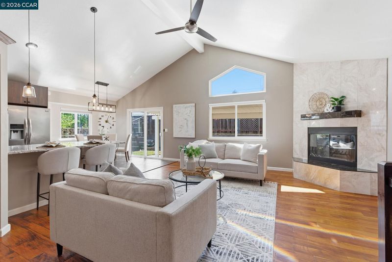 Beautifully updated, turn-key contemporary home in the desirable unincorporated Mountain View neighborhood of Martinez! This light-filled residence features soaring vaulted ceilings, a dramatic floor-to-ceiling marble fireplace, & an open-concept layout ideal for modern living. The custom kitchen showcases rich cherry cabinetry, upgraded granite countertops, durable porcelain flooring, S.S. Frigidaire appliances, & a breakfast bar that opens effortlessly to the main living spaces. Elegant cherry wood flooring runs throughout, complemented by modern stair railings with brushed nickel accents, while the bedrooms offer plush carpeting for comfort. The spacious primary suite features dual sinks & abundant natural light from skylights & sun tunnels. Recent upgrades include a new furnace, new A/C condenser, newer roof, tankless water heater, & Nest thermostat - offering comfort, efficiency, & peace of mind. The finished 2-car garage includes a 220V outlet. Step outside to your private, fenced backyard with lawn & covered patio—perfect for relaxing, pets, children or entertaining! Ideally located near Morello Park Elementary, Hidden Valley Park, & Briones Regional Park, with convenient access to Highways 4 & 680. Enjoy the perfect blend of peaceful hillside living & everday convenience!