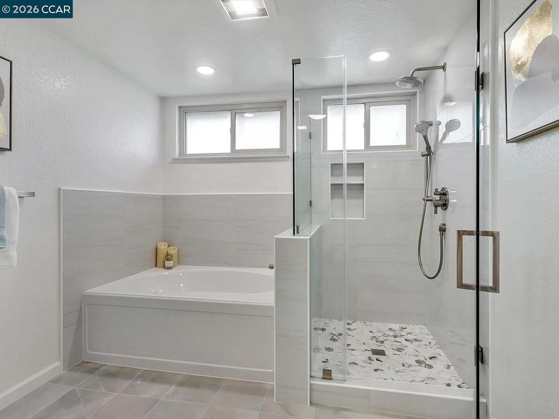Shower Over Tub, Solid Surface, Tile, Updated Baths