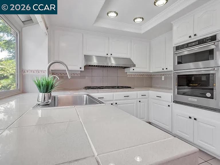 Dishwasher, Gas Range, Refrigerator, Dryer, Washer, 220 Volt Outlet, Tile Counters, Eat-in Kitchen, Disposal, Gas Range/Cooktop