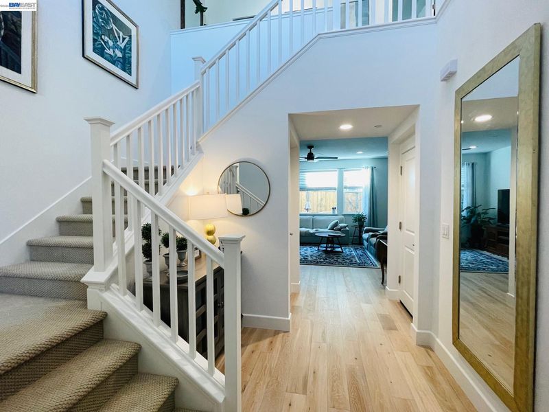Welcome to 168 E Calder Dr, a charming north-facing 3BD/2.5BA 1,777 sq ft home in desirable Mountain House community. This bright and cozy home features an open floor plan with south-facing kitchen, living, and dining areas that bring in abundant natural light. The upgraded kitchen includes quartz countertops, full mosaic backsplash, modern hardware, and recessed LED lighting. White oak engineered wood flooring enhances the first floor. Upstairs offers a spacious primary suite with barn-style sliding door and well-appointed bath, plus two additional bedrooms. Enjoy a beautifully landscaped backyard with patio surrounded by flowers and trees, perfect for outdoor living. Additional highlights include owned solar, upgraded lighting, ceiling fans, window coverings, and a finished garage with shelving. Over $53K in upgrades. Prime location: steps to Cordes Park and less than 1 minute walk to Langston Community Park. 2â3 minute walk to top-rated Julius Cordes Elementary (Kâ8), Mountain House High, Apple shuttle stop, tennis courts, and Cordes Plaza. 10â15 min drive to Costco, Walmart, and shopping in Tracy. A must see!