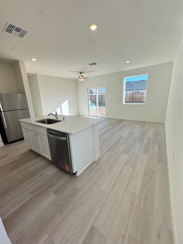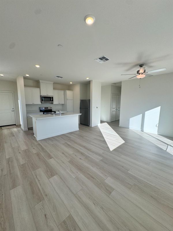 The Amador at Dantoni Ranch is a beautifully designed two-bedroom, two-bathroom home with an open layout that blends the kitchen, dining, and living areas. A modern kitchen with granite countertops, ample cabinetry, and energy-efficient appliances makes meal prep a breeze. With included upgrades like luxury vinyl-plank flooring, a programmable thermostat, and a Wi-Fi-enabled garage door opener, this home offers both style and convenience from day one.