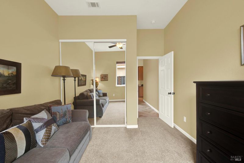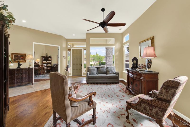 Welcome to this beautifully maintained single-story home in the desirable Paradise Valley community. From the moment you step inside, you're greeted by stunning wood flooring that flows through the family room, creating a warm and inviting atmosphere. Travertine tile guides you into the heart of the home, the kitchen, featuring modern cabinetry, a spacious island, and an open layout that seamlessly connects to a cozy breakfast nook overlooking the perfectly landscaped backyard. Just off the kitchen, the family room is filled with natural light from large windows and anchored by a charming fireplace, making it the perfect space to relax or entertain. The versatile fourth bedroom is currently set up as a home office but can easily serve as a guest room or additional bedroom to fit your needs. The primary suite offers a private retreat with glass doors that open directly to the backyard, blending indoor and outdoor living. The en suite bathroom feels like a spa, complete with a large walk in shower designed for comfort and relaxation. This move in ready home combines style, functionality, and comfort. Don't miss your opportunity to make it yours!