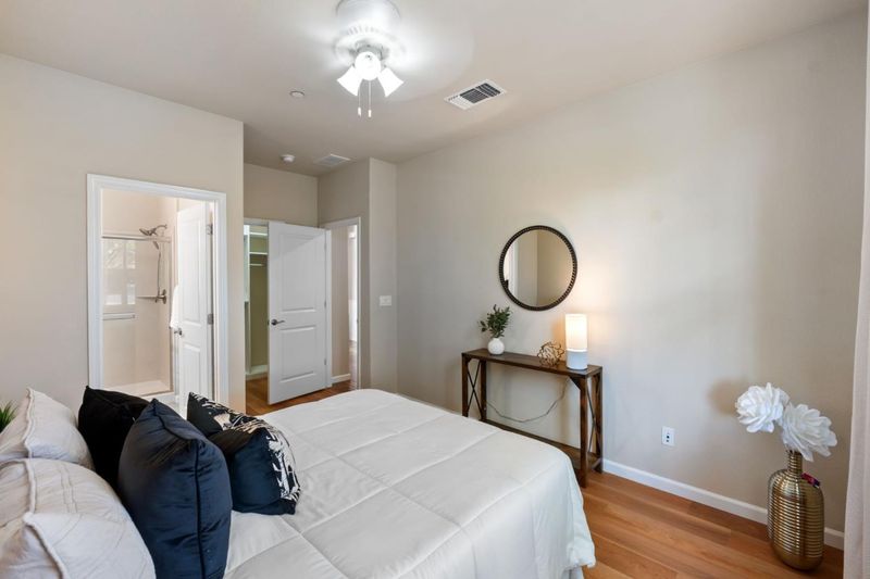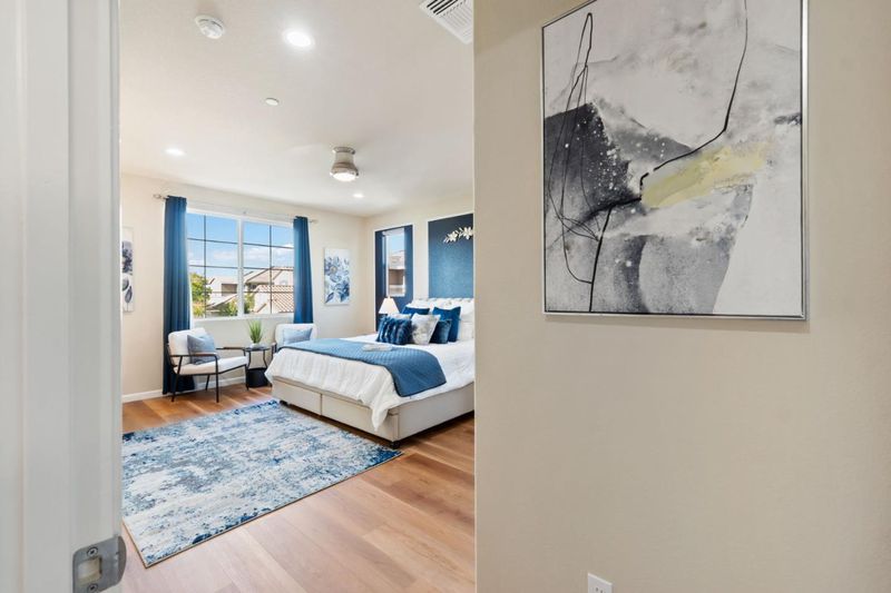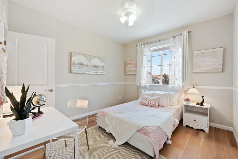 Welcome to this beautifully maintained Union City home offering comfort, style, and modern convenience in a prime location. Designed for both everyday living and entertaining, the home features spacious living areas, recessed lighting, hardwood flooring throughout, and an open-concept layout. The upgraded kitchen showcases fresh white cabinetry, a large island with upgraded countertops, stainless steel appliances, and seamless flow into the dining and family rooms. A desirable first-floor bedroom with an attached full bath, walk-in closet, and custom built-in shelving is perfect for guests, multigenerational living, or a home office. Premium finishes include upgraded living room cabinetry and floor-to-roof stone cladding in bathrooms. Tech-ready and energy efficient, the home offers a wired network with media hub, home theatre wiring on both levels, fully paid solar panels with PG&E net metering, and 220V EV charging in the garage. Set on one of the largest lots in the community, the finished backyard includes lawn, play space, outdoor dining, gazebo seating, and mature fruit trees. Conveniently located near top-rated schools, Union Landing, parks, and easy access to I-880, Hwy 84, and Hwy 92.