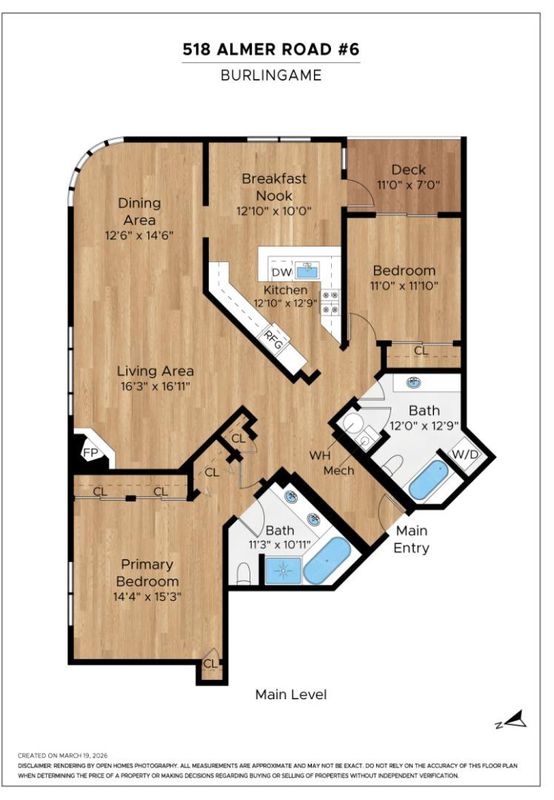 Welcome to 518 Almer Road #6, an exquisitely renovated luxury condominium in the heart of downtown Burlingame. Just moments from boutique shopping and acclaimed dining, this residence offers an exceptional blend of style, comfort, and convenience. Thoughtfully upgraded throughout, the home features high-end finishes, double-pane windows with custom treatments, and an abundance of natural light. The expansive living room is bright and inviting, complete with a cozy fireplace that creates the perfect ambiance for relaxing or entertaining. The spacious eat-in kitchen boasts granite countertops, premium cabinetry, and a breakfast bar, flowing seamlessly into the dining area. The primary suite is a luxurious retreat with dual sinks, an oversized jetted tub, and a separate stall shower. A well-appointed second bedroom offers ample closet space and direct access to a private balcony, also accessible from the kitchenideal for indoor-outdoor living. Additional highlights include in-unit laundry, generous storage, two-car gated parking, and two storage units. Located in an exclusive eight-unit building with elevator access, and near Highway 101, Caltrain, and San Francisco International Airport, this home delivers upscale living in a premier location. HOA fees cover garbage and water.