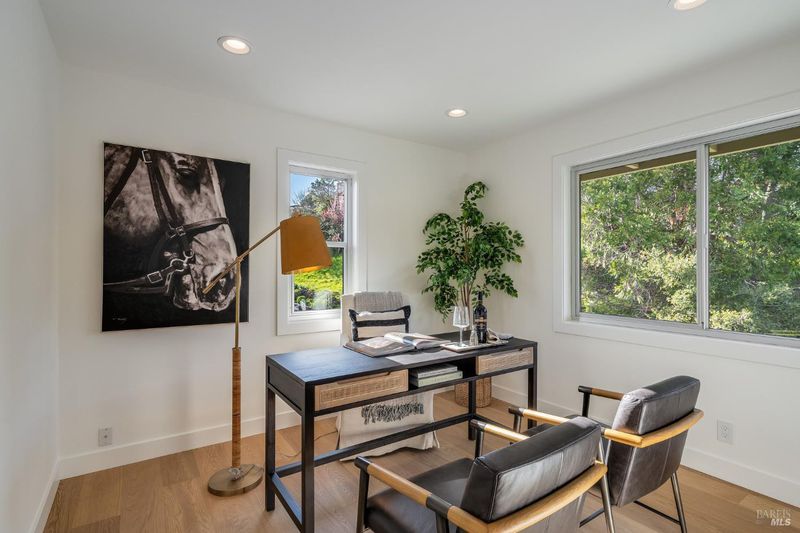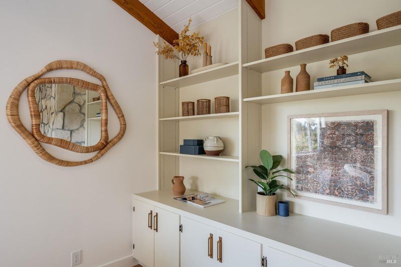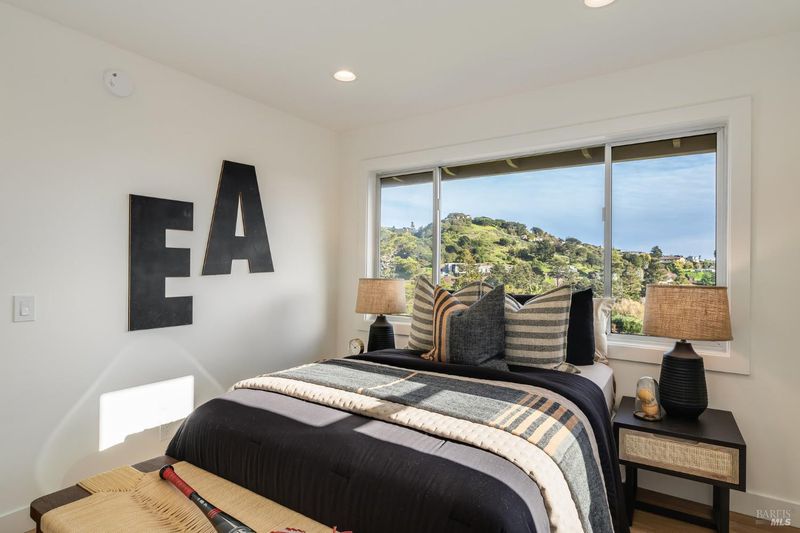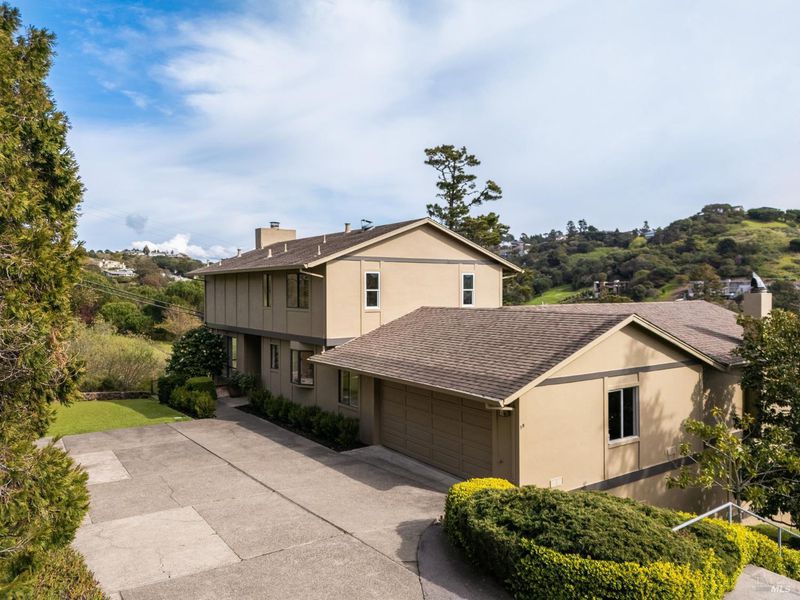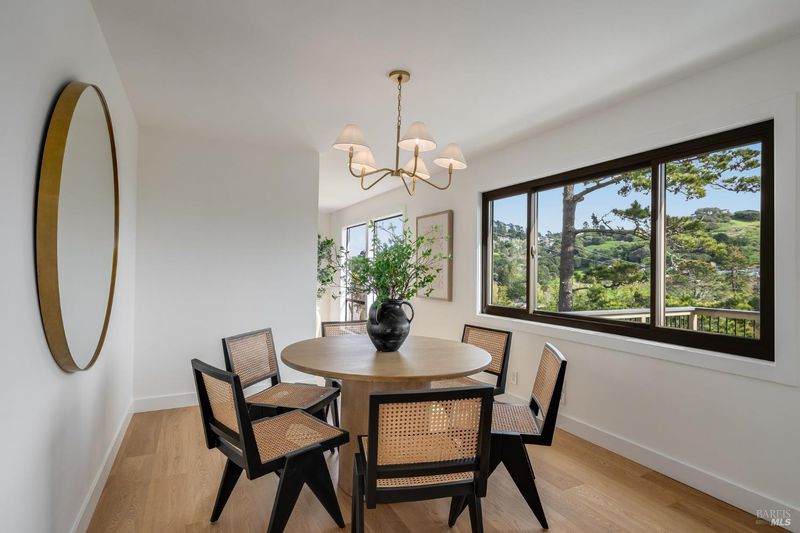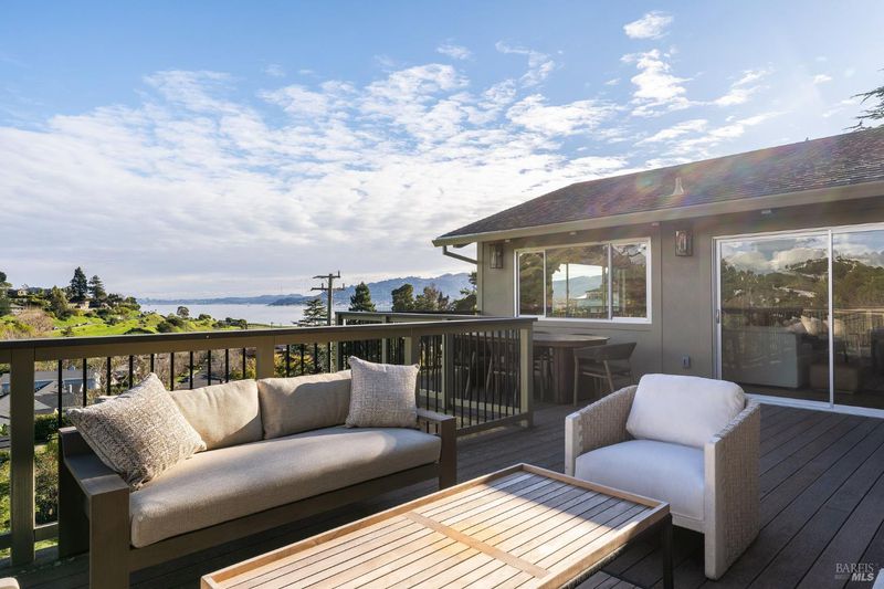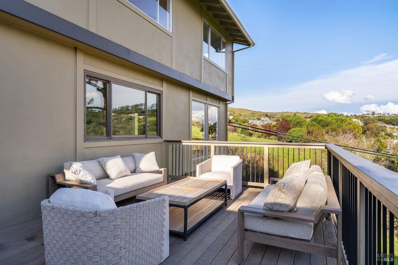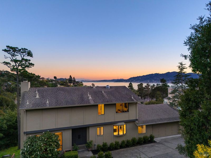 Panoramic Bay views and modern luxury shine in this stunning Mid-Century Modern 3-level home overlooking the skyline of San Francisco, Sausalito waterfront, & beautiful Richardson Bay. Featuring 5 bedrooms, 3.5 bathrooms, & approximately 3,374 sf. on over 1/2 acre, this exceptional residence blends timeless architecture w/ stylish modern updates. A sun-filled living room w/ a wood-burning fireplace & expansive picture windows immediately showcases the breathtaking Bay views. The elegant dining area flows into the beautifully renovated chef's kitchen the heart of the home featuring premium Sub-Zero, Miele, and JennAir appliances, Quartz countertops, and refaced cabinetry. The spacious family room impresses with cathedral open-beam ceilings, a dramatic stone gas fireplace, & direct access to a large view deck perfect for entertaining and unforgettable gatherings. A private lower-level ensuite bedroom w/ walk-in closet & separate entrance is ideal for guests or au pair quarters, while the upper level offers 4 additional bedrooms, including a serene primary ensuite w/ walk-in closet & remodeled bathroom. Spectacular views of the SF Bay from every room. Upgrades incl. new hardwood floors, stylishly updated bathrooms, and a park-like lot just moments from trails at Ring Mountain and Blackie's Pasture, this home delivers an incredible blend of views, space, & elevated Marin living.