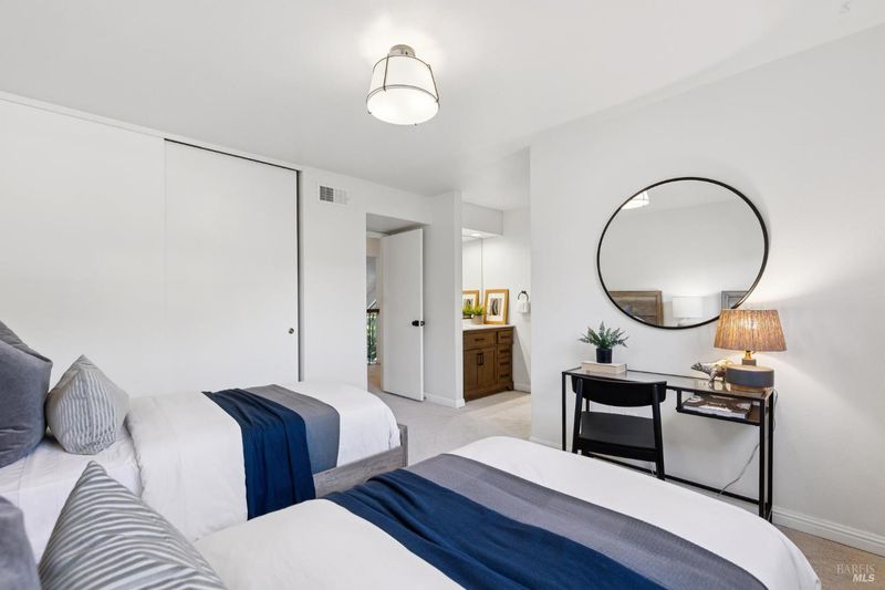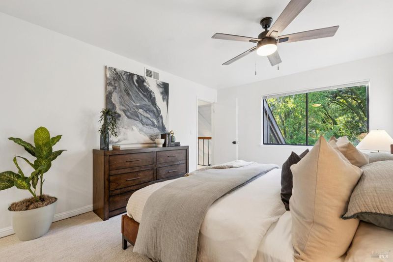 Nestled in the Ignacio Creek community is this charming 3BR/2BA home surrounded by mature oaks, lush greenery & the soothing sounds of a nearby creek. Tranquil, private, yet conveniently close to everyday amenities. The open, bright & airy floor plan features vaulted ceilings, 2 custom skylights, expansive windows w/forest views, gas starter/wb fireplace & sliding glass doors to a private outdoor patio. Updated eat-in kitchen w/ ss appliances, new quartz countertops & convenient pass-through window to DR. Upper level includes 2BR's, a spacious primary w/WIC - personal vanities in both bedrooms & shared Jack-and-Jill bath. Add'l BR & BA on the main floor. Highlights include NEW Heating & AC system, NEW electrical panel, NEW LVP wood flooring, NEW carpet upstairs, sxs W/D, Deeded garage & 1 outdoor space. Community amenities include pool, tennis courts & scenic walking paths. HOA covers landscaping, roofing, building insurance, sewer lateral, exterior maintenance etc. Close to Indian Valley College, hiking/biking, golf, shopping, dining, grocery stores & farmers market - w/easy access to Highways 101 & 37. A peaceful, picturesque retreat offering comfort, convenience & lasting value - come see firsthand why 803 Indian Way is the place you'll want to call home!